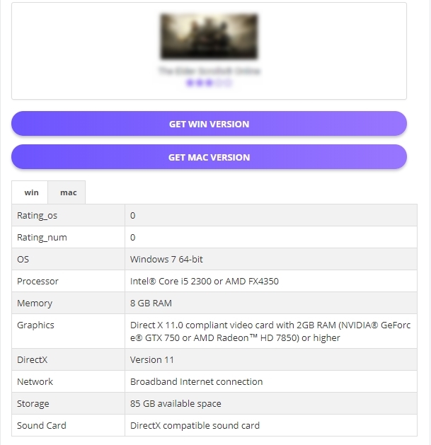 Here you can find all the game requirements starting from the OS of your PC and complemented with such specifications like graphics, memory, network, sound card, storage, and so on.